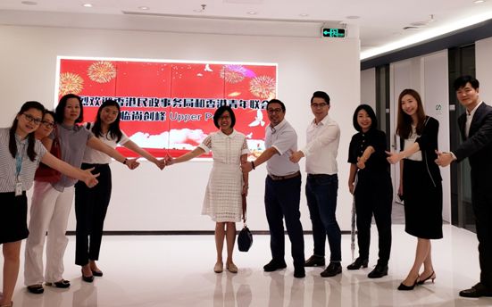 7月24日,香港民政事务局局长政治助理黎颖瑜、香港青年联会副主席何迪夫在市委统战部海联会秘书员、区侨办科长和高峰集团副总裁、观澜湖集团公共事务总监等领导的陪同下来到尚创峰 Upper Point总部进行参观考察,双方就深港创新创业发展、两地创业补贴等内容进行深度交流探讨。