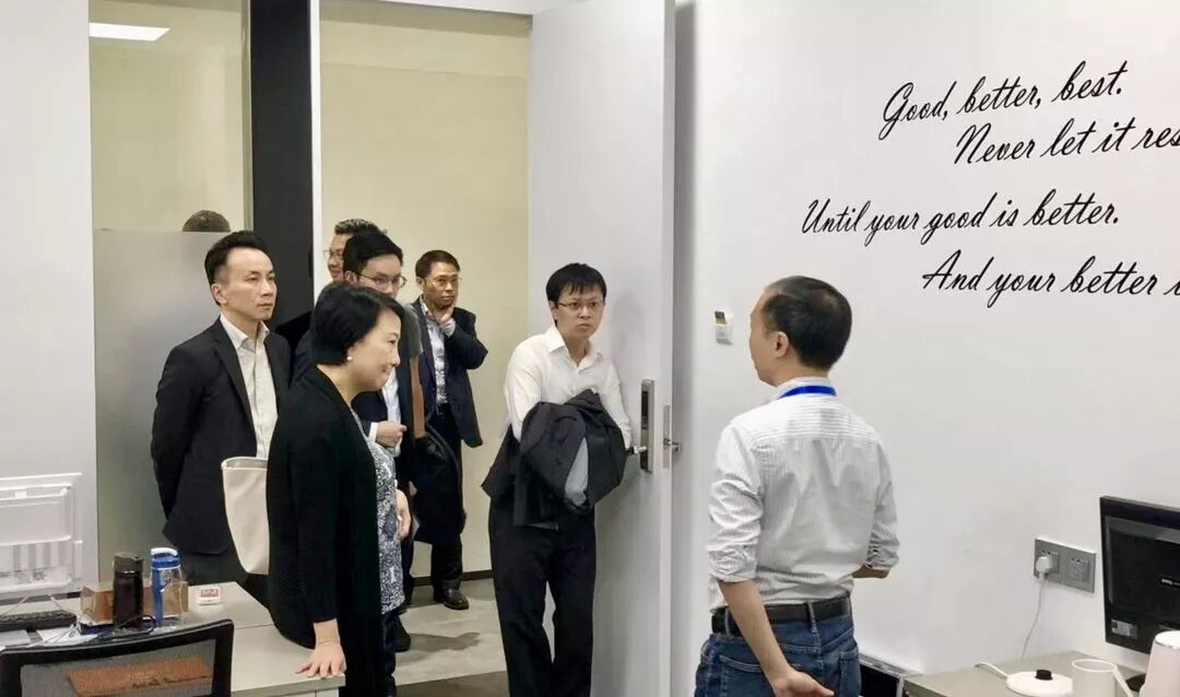 在尚创峰负责人的带领下,香港民政事务局与香港青年联会等领导参观了基地,对基地的硬件配套设施、软件增值服务等进行了相关了解,也对入驻基地的香港客户、香港万治医疗团队做了参观交流。